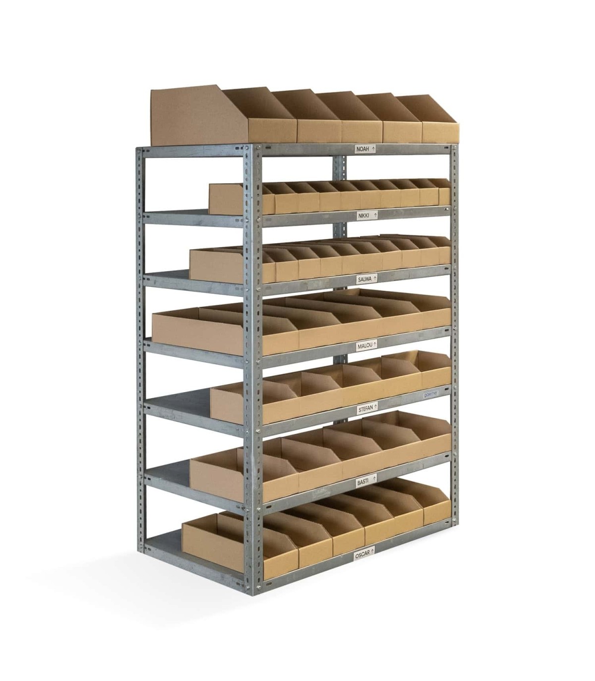 La caja de estantería "Oscar", con unas dimensiones de 40 x 15 x 10 cm, un peso de 0,11 kg y un volumen de 5,3 litros, es ideal para almacenar artículos de tamaño mediano como cables, componentes electrónicos o herramientas pequeñas. Esta caja ofrece una solución de almacenamiento ecológica y rentable. Estandarizada para sistemas de estanterías comunes, "Oscar" facilita la organización y optimiza el uso del espacio en las áreas de almacenamiento. Su fácil montaje mediante mecanismo enchufable y la certificación FSC reflejan nuestro compromiso con los productos sostenibles. Su capacidad de carga de hasta 10 kg y su robustez, garantizada por el cartón corrugado de 3 mm de grosor y calidad B 1.3, hacen de "Oscar" un componente indispensable para una gestión eficiente del almacenamiento.